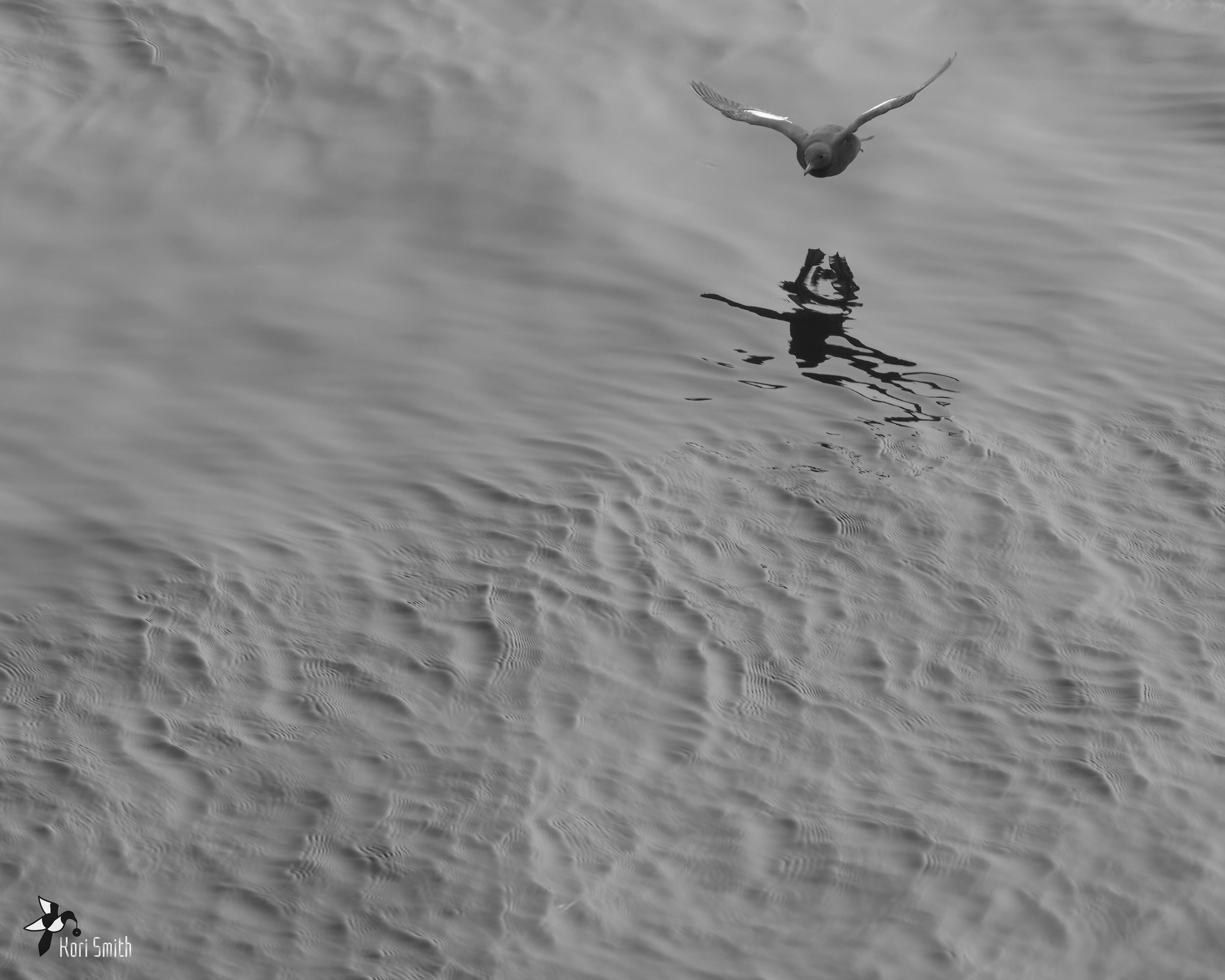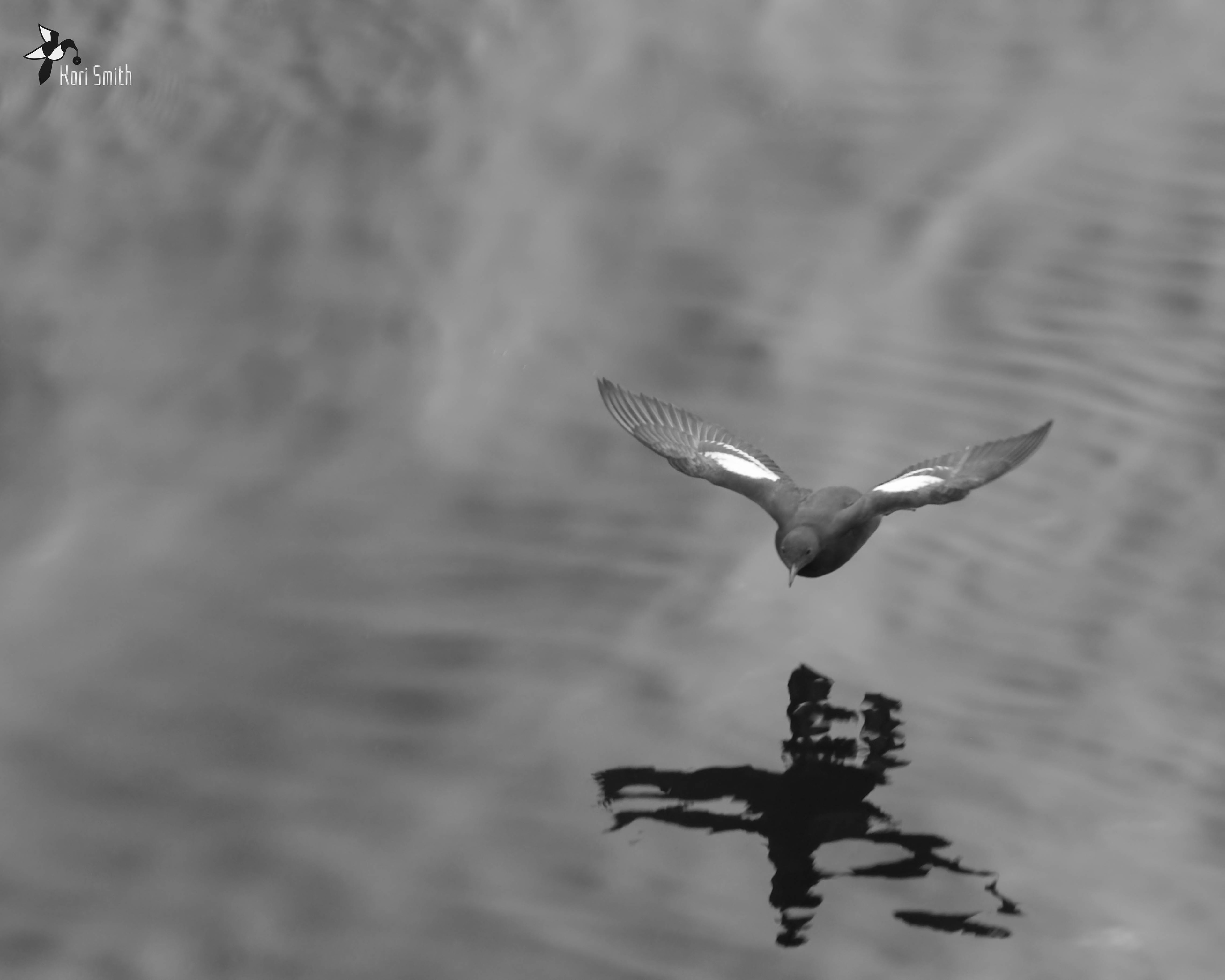 A pigeon guillemot is returning to its family at the base of Monterey Bay Aquarium's harbor-side exhibit.